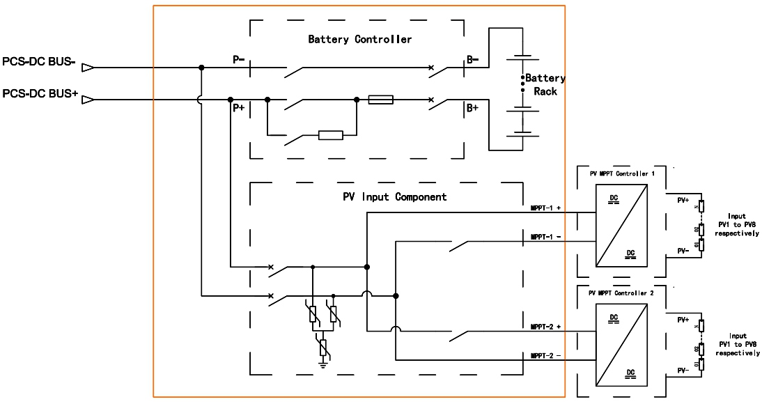 3. Valinnainen PV DC-kytketty pääsy keskittimen ja pinnan MPPT-ohjaimeen sopivaksi;
